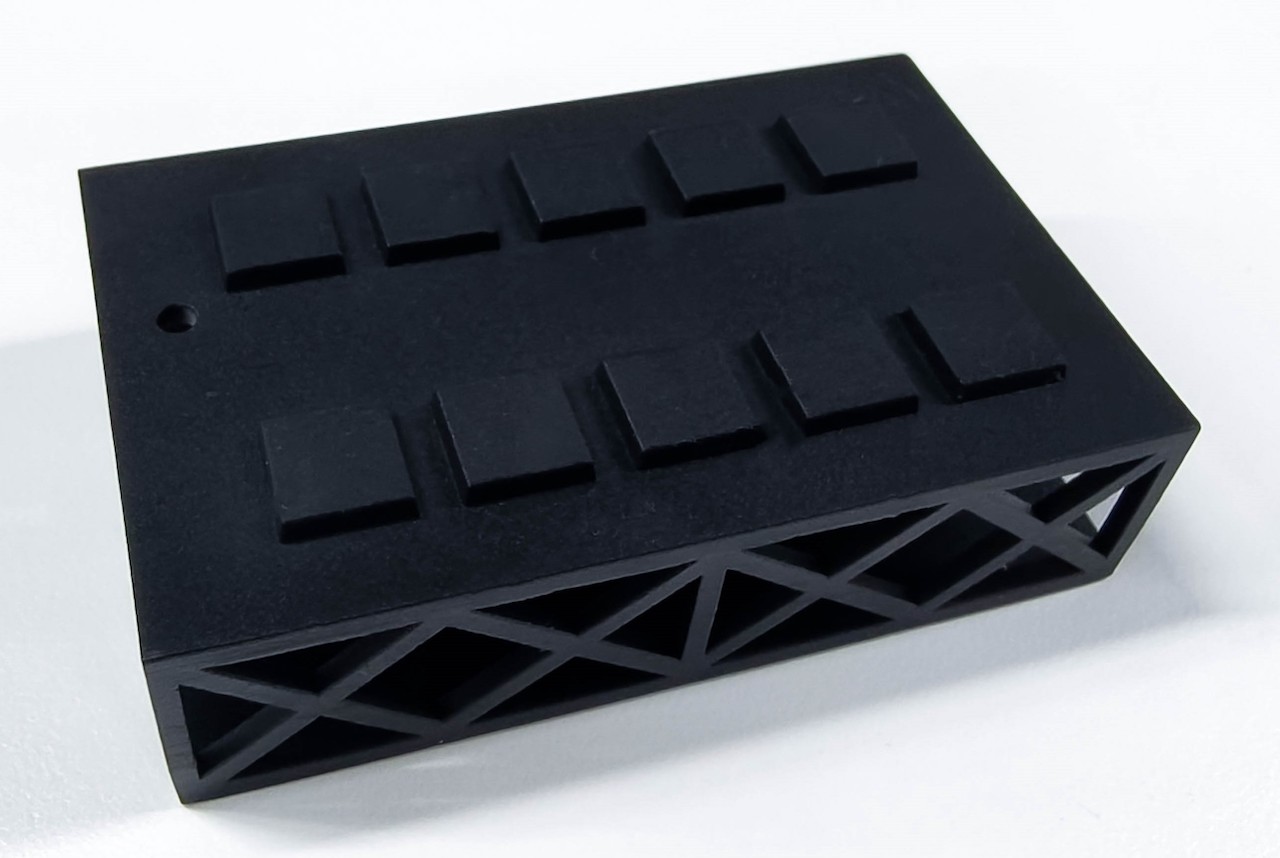 OLA 7200Pro is a gray-black, glass bead–filled nylon material featuring a unique balance of excellent rigidity and good elongation at break. It is particularly suited for applications requiring high stiffness, heat resistance, and wear durability. This material is optimized for repeated use in demanding industrial environments.